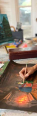 Het creëeren van mijn persoonlijke werk is een echte ‘roeping’, soms heb ik zoveel ideeën en inspiratie dat ik absoluut MOET schilderen. Alles moet eruit ,letterlijk uit mijn hoofd en op een (meestal) canvas. Dit uit zich dan in weken achter elkaar schilderen omdat ik graag helemaal in het creatieproces duik. Dit wissel ik graag af met werk op maat. Dit kan gaan van Illustraties tot portretten. Vind ik superfijn als ik samen met mijn klant een uniek werk kan creeren dat perfect bij hem/haar past.