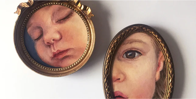Deze detailportetjes zijn gemaakt met olieverf en ingekaderd in antieke kaders. Ze zijn geïnspireerd op de 18de eeuwse oogminiaturen , ‘lovers eyes’. Ze werden gemaakt in opdracht als geschenk voor een geliefde of ter nagedachtenis aan overleden dierbaren. Ze waren zeer intiem en bijzonder kostbaar. Verwerkt in broches, kettingen of ringen werden ze dichtbij zich gehouden. Zo kon men wanneer men maar wou de geliefde in de ogen kijken. Het is mijn doel om deze traditie opnieuw verder te zetten.
